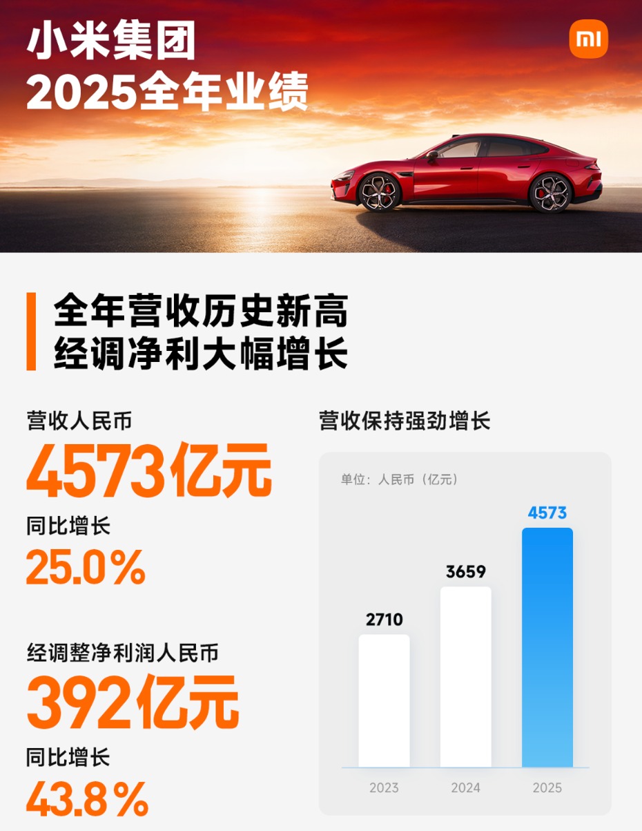 小米集团2025年营收4573亿元