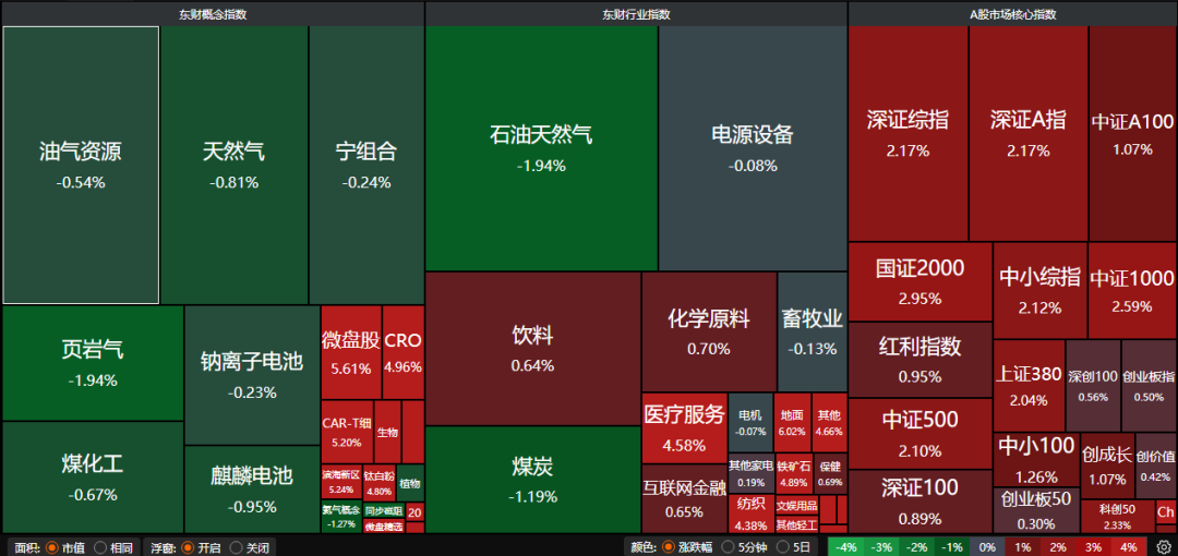 A股三大指数昨日集体上涨,沪指涨1.78%,深证成指涨1.43%,创业板指涨0.50%,沪深京三市成交额20962亿。行业板块罕见全线上扬,地面兵装、电力、贸易、环保、医疗服务、装修建材、工业金属、公用事业、专业工程、电网设备、纺织服装板块涨幅居前。