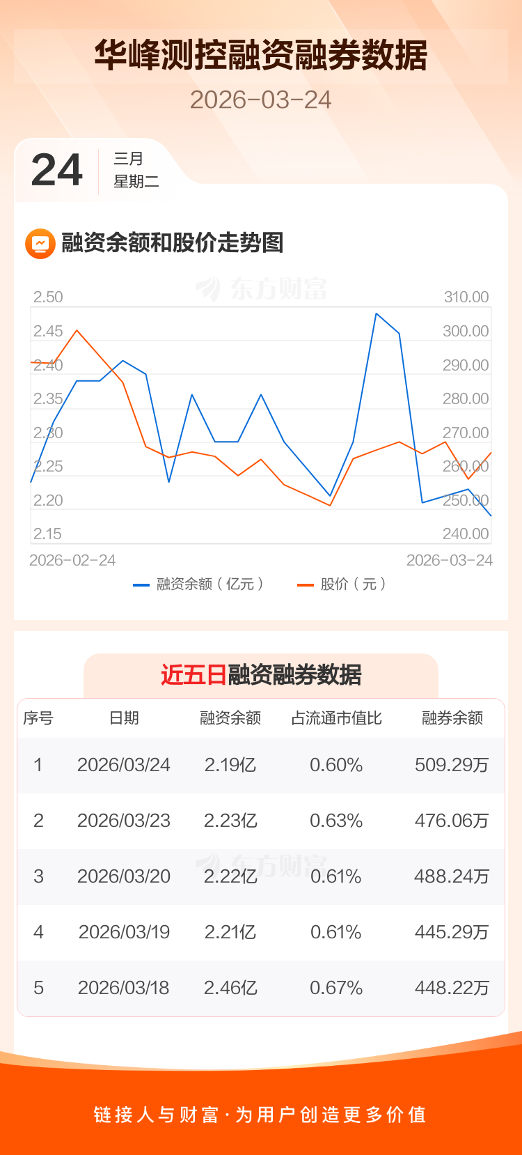 交易所最新数据显示,华峰测控于2026年3月24日获融资买入2736.22万元,融资偿还3131.08万元,当日融资净偿还394.86万元。目前,该股融资余额2.19亿,占流通市值比例为0.60%。