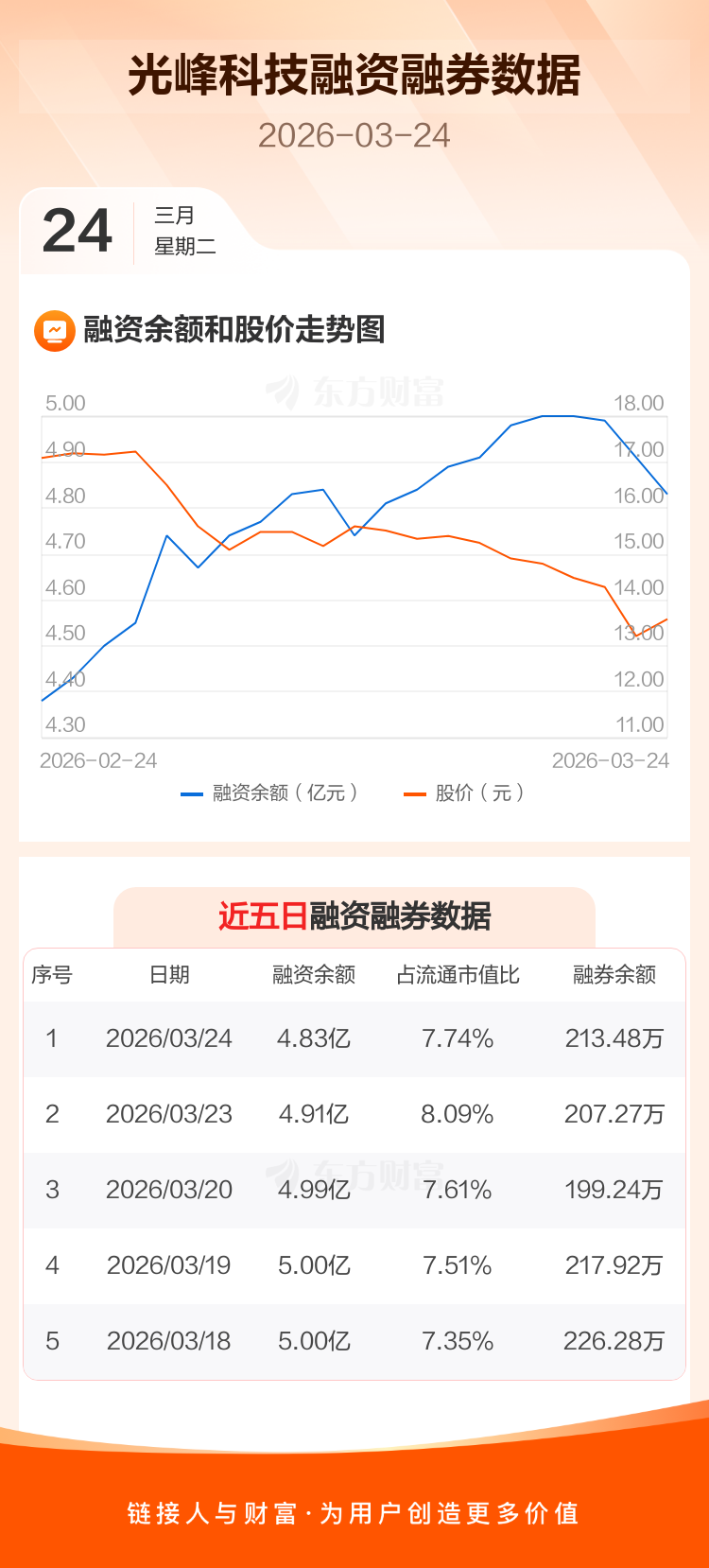 交易所最新数据显示,光峰科技于2026年3月24日获融资买入511.97万元,融资偿还1310.92万元,当日融资净偿还798.95万元。目前,该股融资余额4.83亿,占流通市值比例为7.74%。