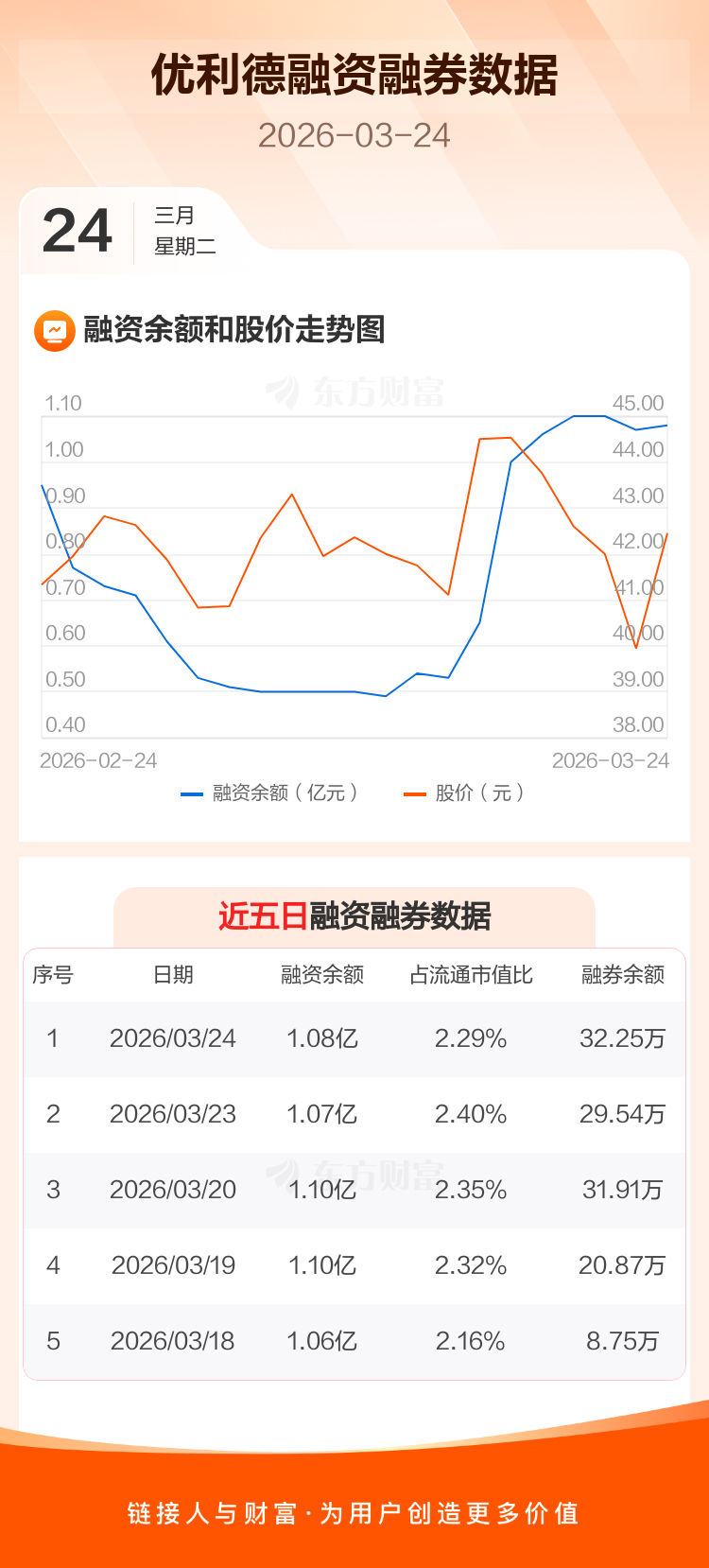 交易所最新数据显示,优利德于2026年3月24日获融资买入742.02万元,融资偿还607.24万元,当日融资净买入134.78万元。目前,该股融资余额1.08亿,占流通市值比例为2.29%。