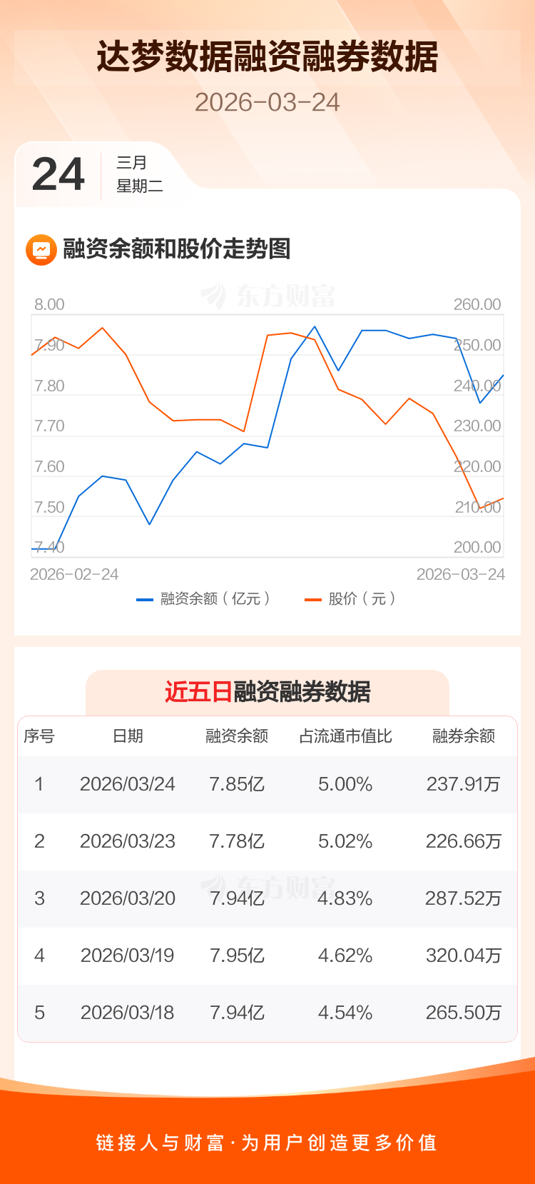 交易所最新数据显示,达梦数据于2026年3月24日获融资买入1539.04万元,融资偿还871.39万元,当日融资净买入667.65万元。目前,该股融资余额7.85亿,占流通市值比例为5.00%。