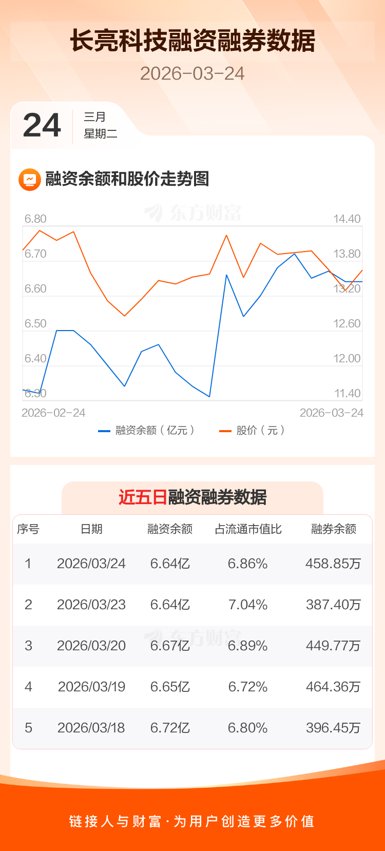 交易所最新数据显示,长亮科技于2026年3月24日获融资买入2730.70万元,融资偿还2730.33万元,当日融资净买入3682元。目前,该股融资余额6.64亿,占流通市值比例为6.86%。