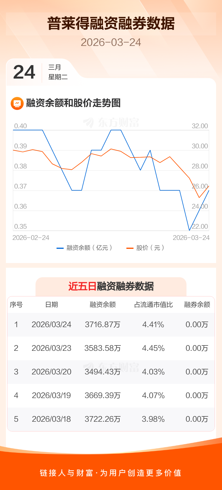 交易所最新数据显示,普莱得于2026年3月24日获融资买入397.96万元,融资偿还264.66万元,当日融资净买入133.3万元。目前,该股融资余额3716.87万,占流通市值比例为4.41%。