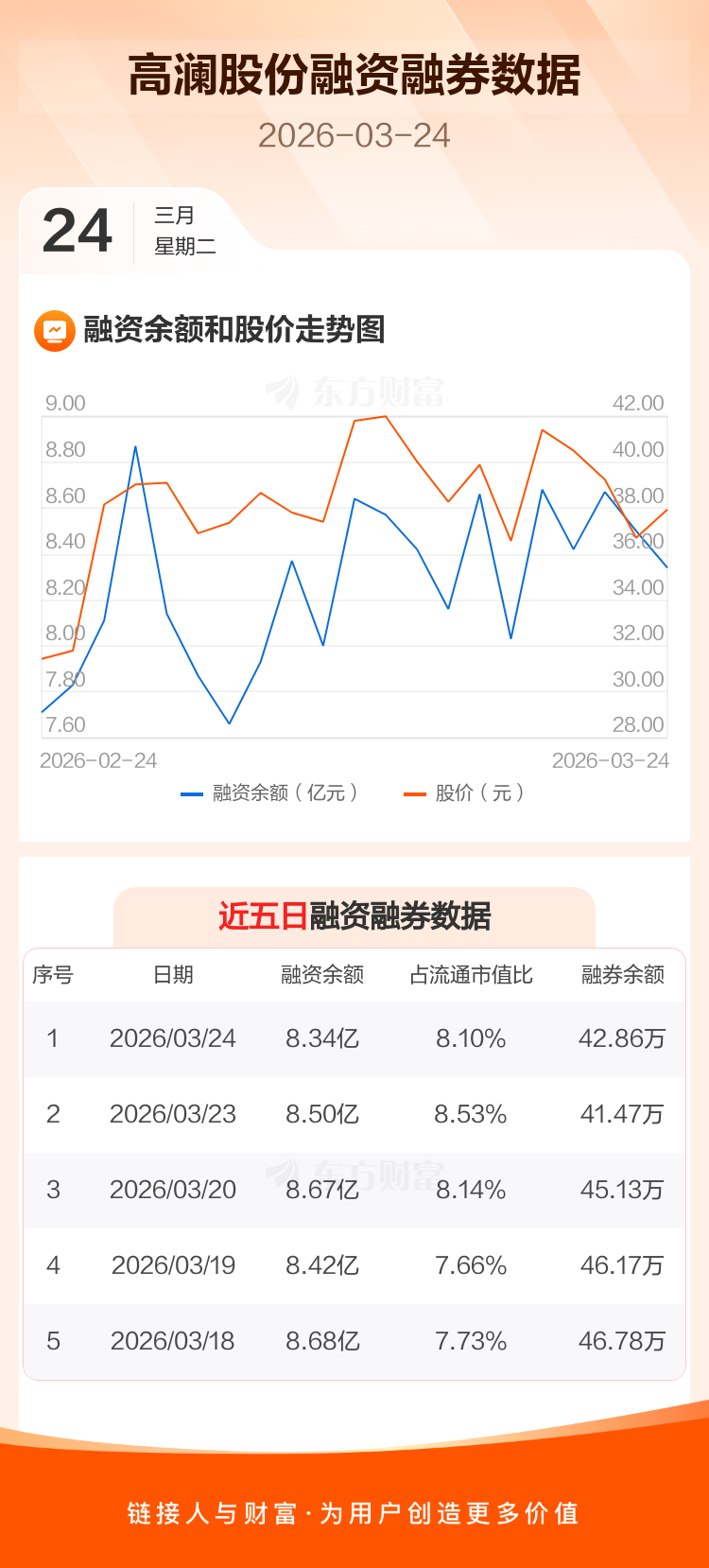 交易所最新数据显示,高澜股份于2026年3月24日获融资买入9043.24万元,融资偿还1.07亿元,当日融资净偿还1651.46万元。目前,该股融资余额8.34亿,占流通市值比例为8.10%。