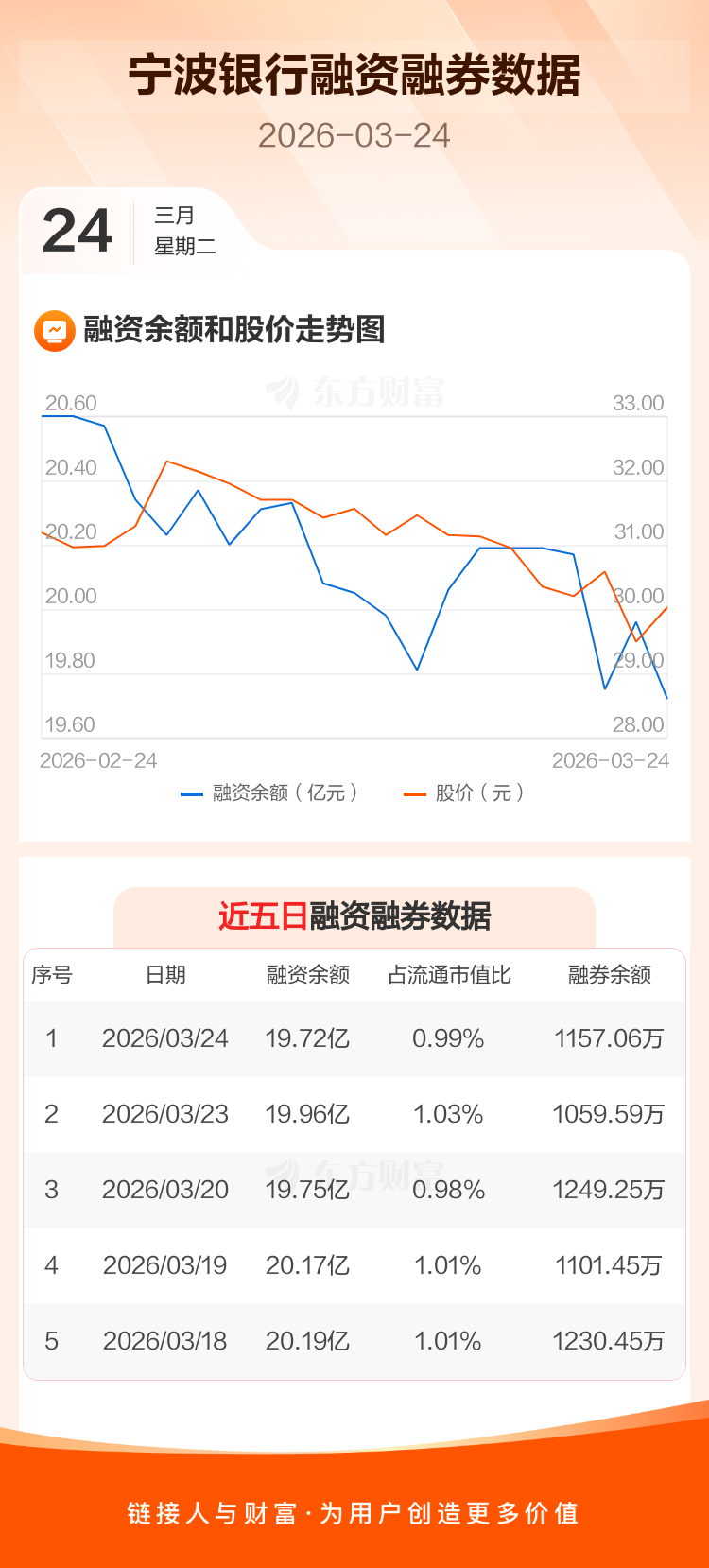 宁波银行:融资净偿还2443.29万元,融资余额19.72亿元