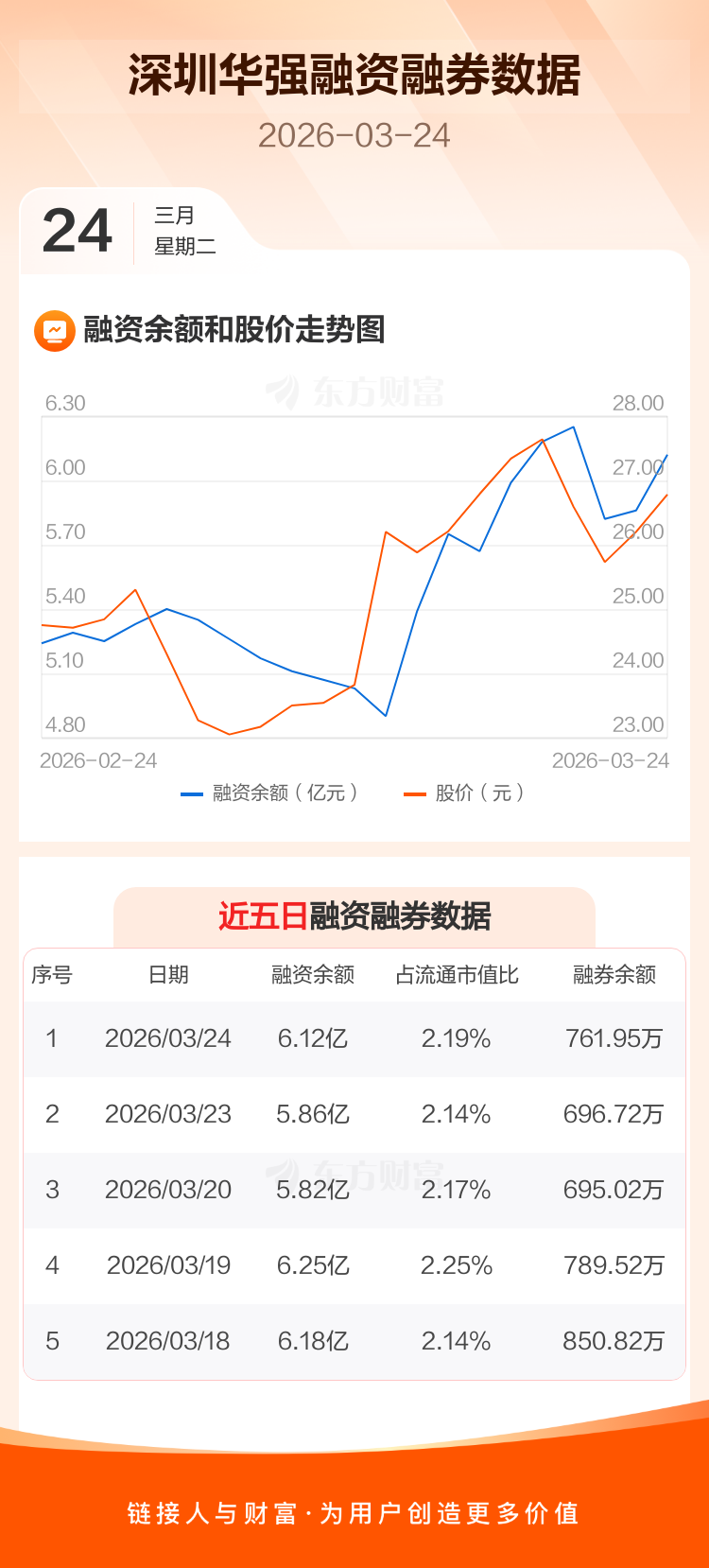 交易所最新数据显示,深圳华强于2026年3月24日获融资买入8566.74万元,融资偿还6030.76万元,当日融资净买入2535.98万元。目前,该股融资余额6.12亿,占流通市值比例为2.19%。