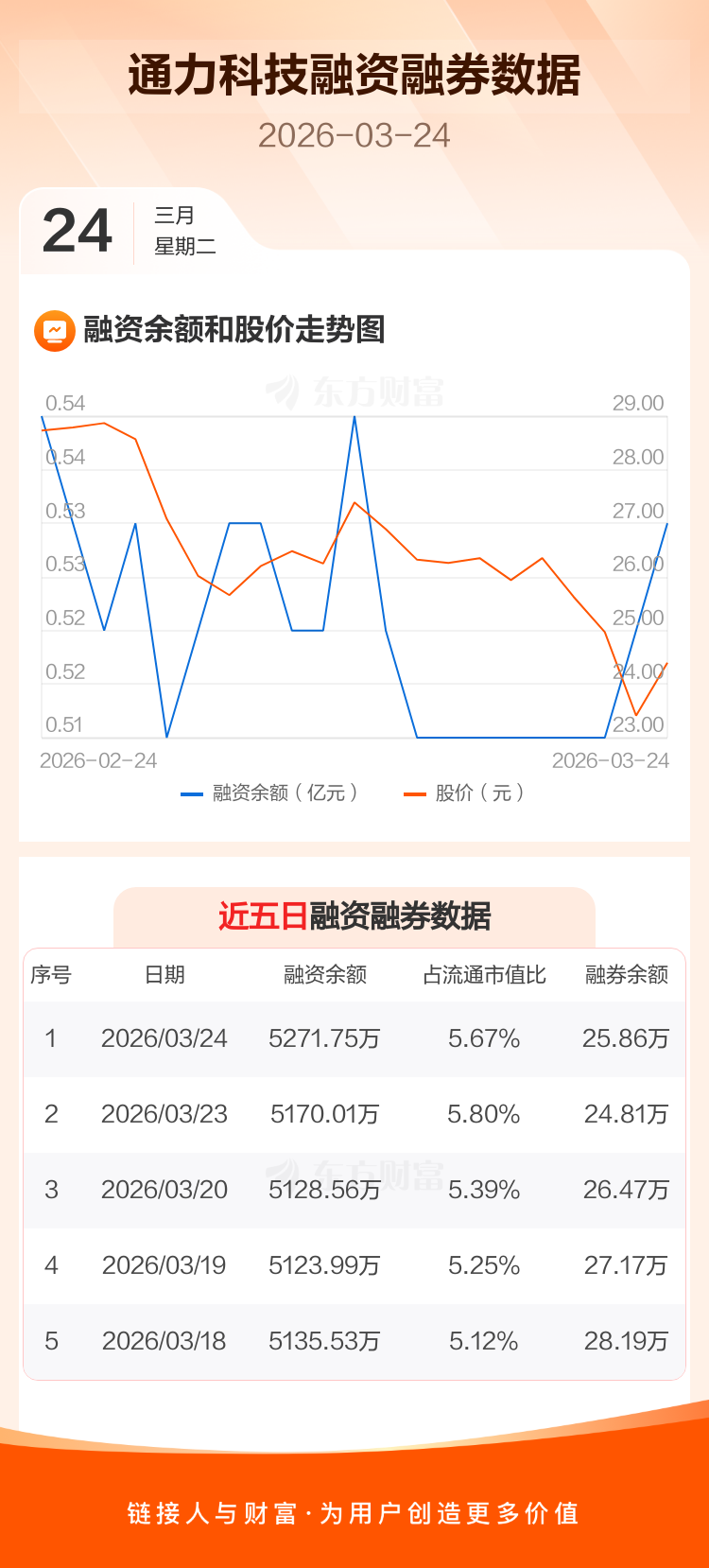 交易所最新数据显示,通力科技于2026年3月24日获融资买入393.52万元,融资偿还291.78万元,当日融资净买入101.74万元。目前,该股融资余额5271.75万,占流通市值比例为5.67%。