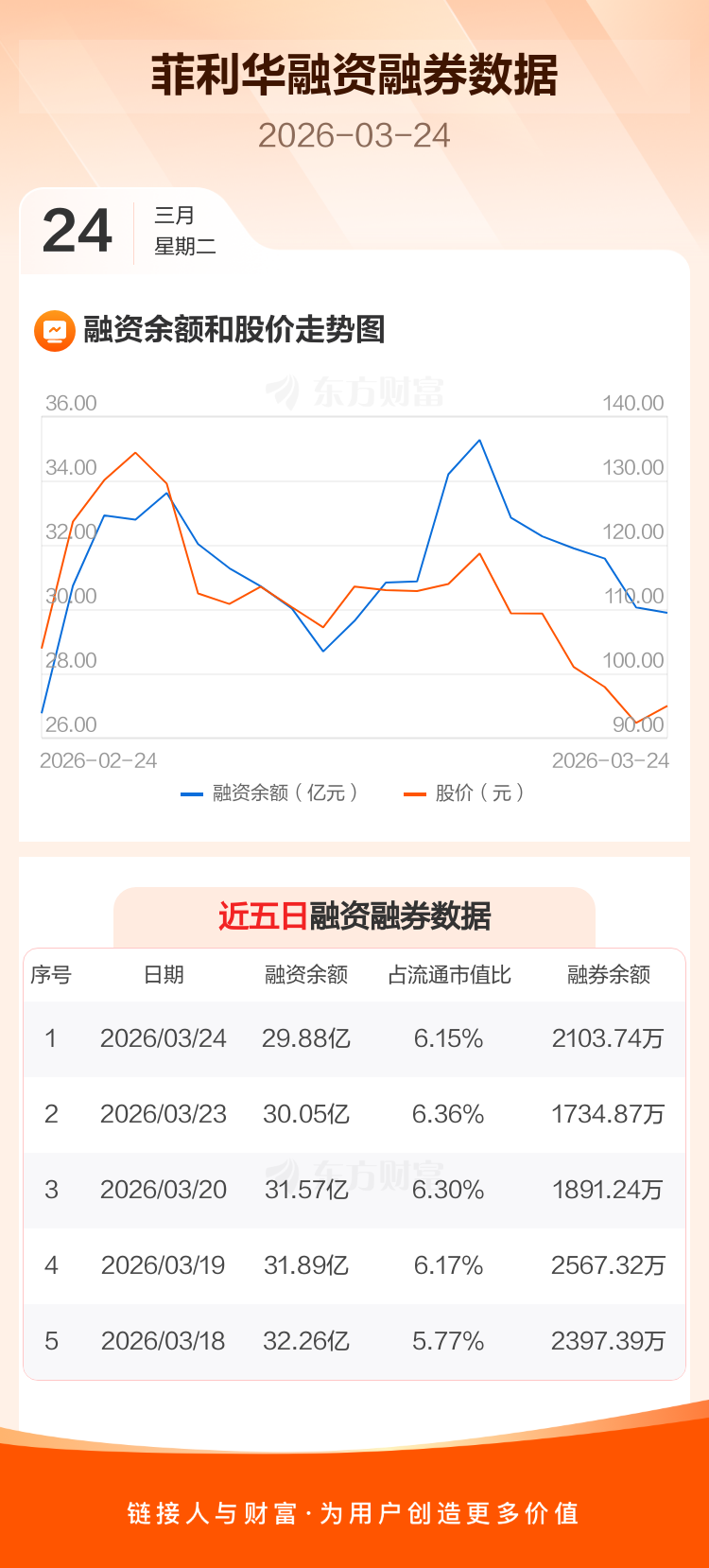 交易所最新数据显示,菲利华于2026年3月24日获融资买入1.88亿元,融资偿还2.04亿元,当日融资净偿还1657.55万元。目前,该股融资余额29.88亿,占流通市值比例为6.15%。