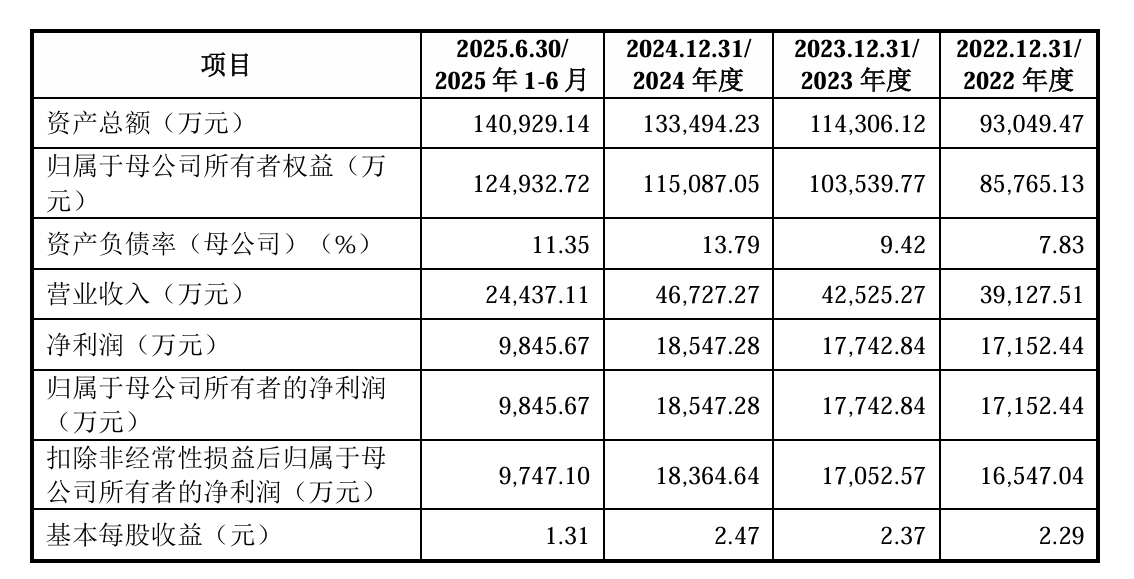 业绩方面,报告期(2022年度至2024年度、2025年上半年)各期,欣兴工具分别实现营收约3.91亿元、4.25亿元、4.67亿元、2.44亿元,归母净利润约1.72亿元、1.77亿元、1.85亿元、9845.67万元。