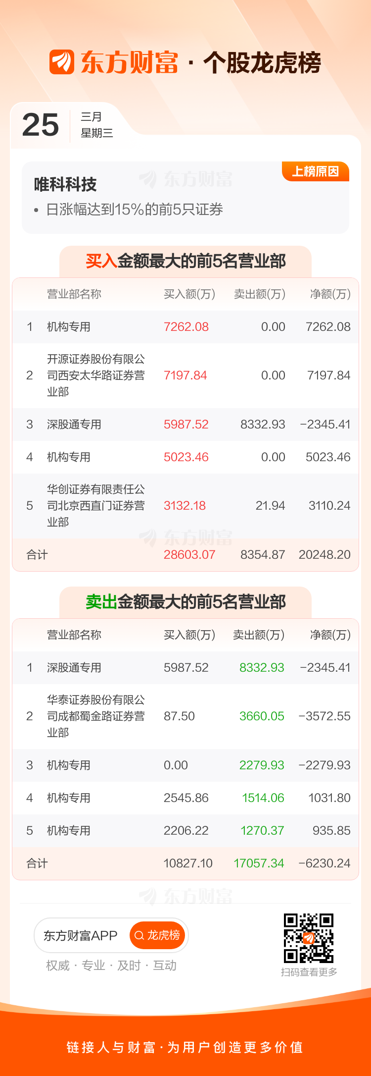 唯科科技(301196)龙虎榜数据(03-25)