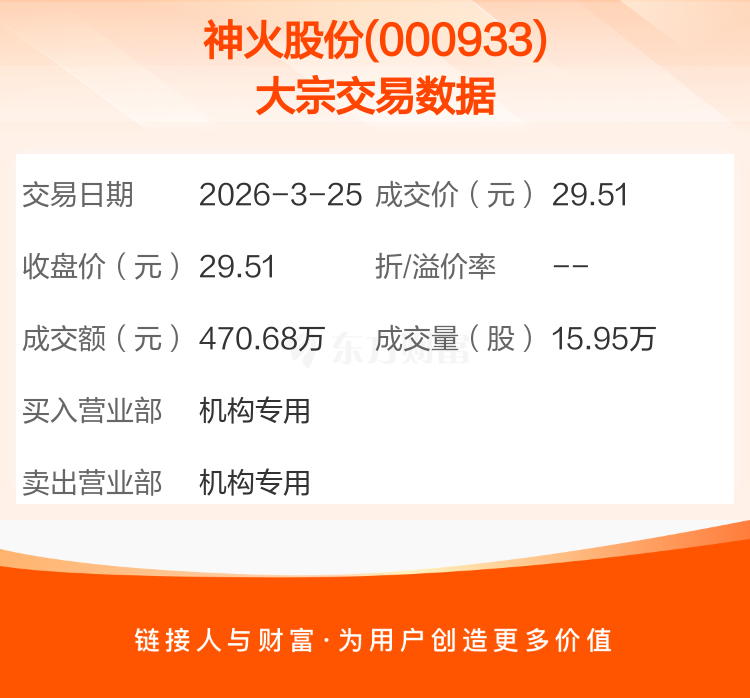 2026年3月25日,神火股份发生1笔大宗交易,共成交15.95万股,成交金额470.68万元。