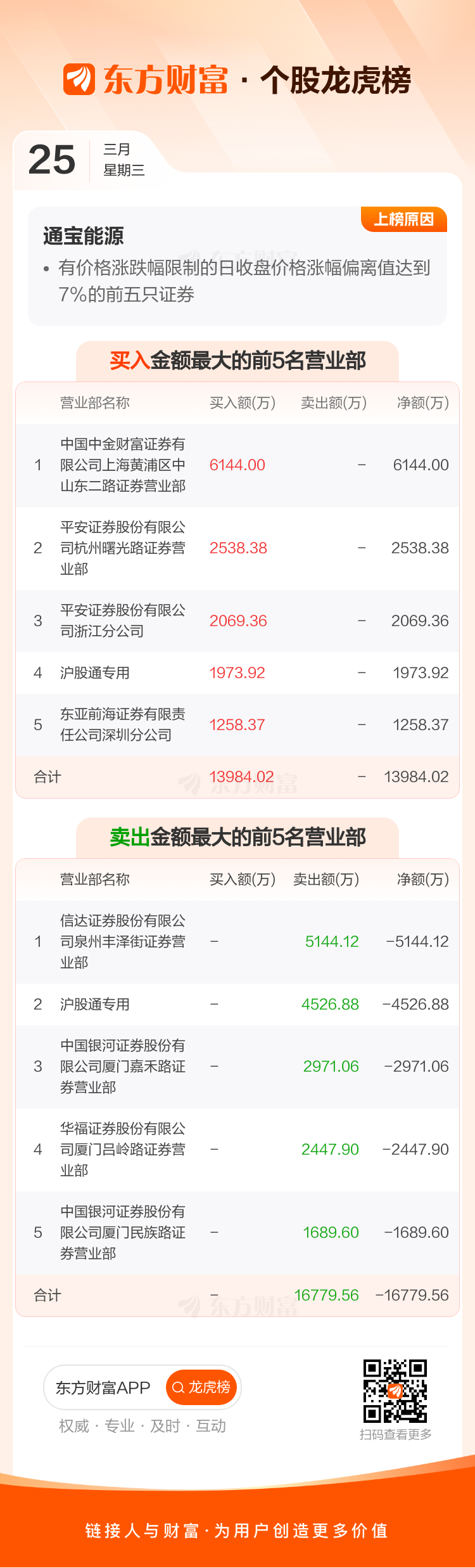 通宝能源(600780)龙虎榜数据(03-25)