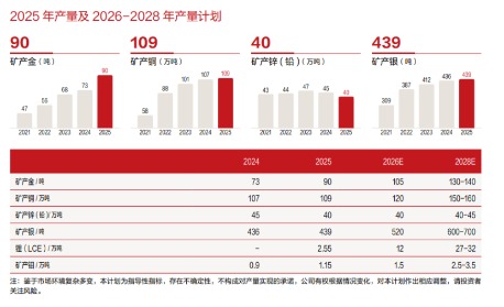 在资源储备与勘探方面,公司2025年共计投入权益地勘资金4.53亿元,年度勘查新增探明、控制和推断的权益资源量为黄金100吨、铜258万吨、钨1.6万吨、钼1.5万吨、银320吨、锌(铅)45万吨,单位勘查成本远低于全球行业平均水平,持续的勘探增储为公司后续发展奠定了坚实的资源基础。