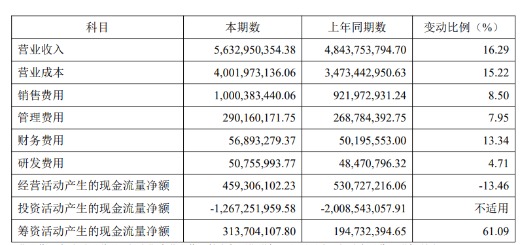 同时,公司销售费用、管理费用、财务费用、研发费用分别同比增长8.50%、7.95%、13.34%、4.71%,与营收增长基本匹配。研发方面也投入持续加码,全年研发投入5075.60万元,占营收比重0.90%,多项研发成果获得行业奖项,为产品创新提供技术支撑。