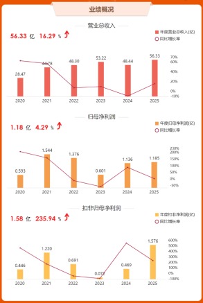 根据妙可蓝多2025年年度报告,公司全年实现营业总收入56.33亿元,同比增长16.29%;归母净利润1.18亿元,同比增长4.29%;扣非归母净利润1.58亿元,同比大幅增长235.94%;基本每股收益0.24元,经营活动现金流净额4.59亿元,同比下降13.5%。