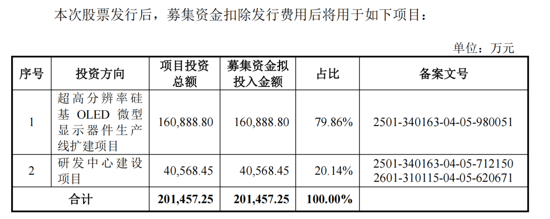 本次视涯科技发行1亿股,发行价格22.68元,募集资金总额22.68亿元,发行后总股本达10亿股。IPO募集资金将投向超高分辨率硅基OLED微型显示器件生产线扩建项目与研发中心建设项目。