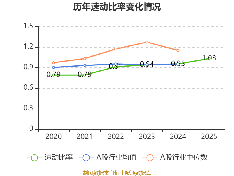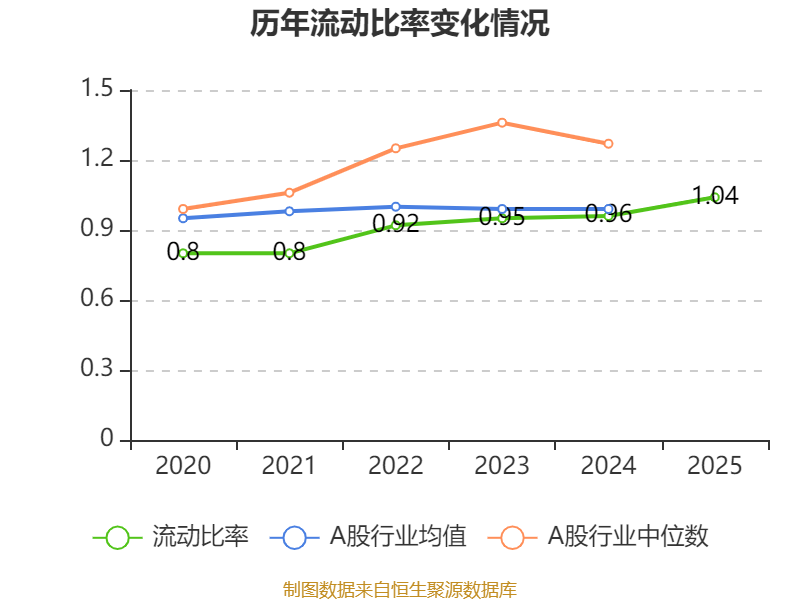 2025年,公司流动比率为1.04,速动比率为1.03。