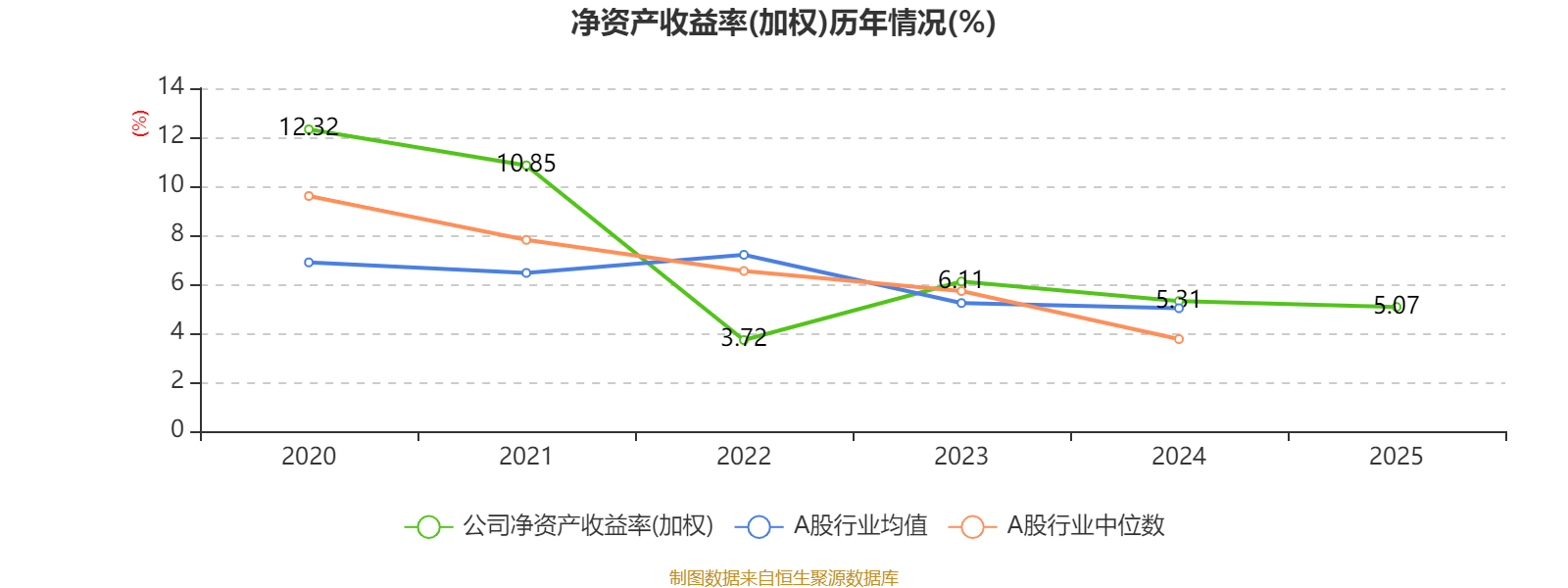 数据显示,2025年公司平均净资产收益率为5.07%,较上年同期下降0.24个百分点。
