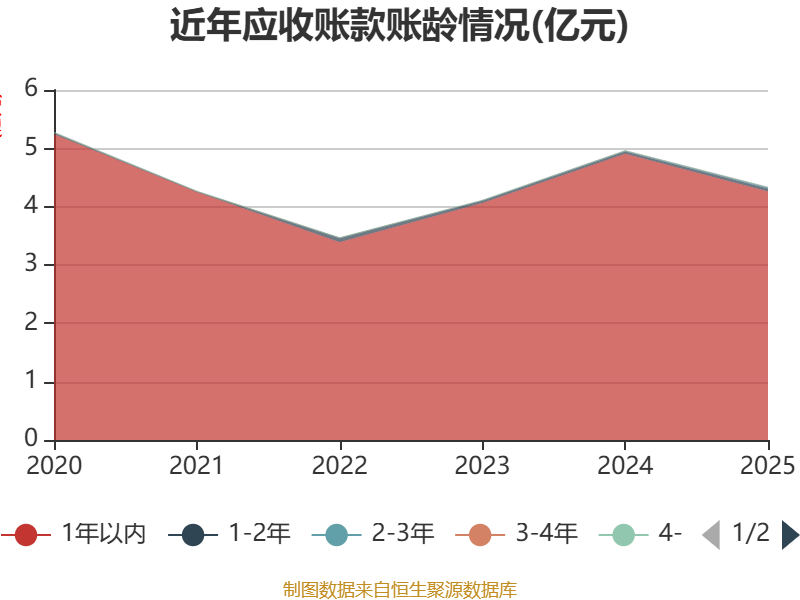 从应收账款账龄结构来看,截至2025年末,公司账龄在1年以内的应收账款余额为4.26亿元,较上年末下降6460.61万元,占应收账款总额比例为98.34%,较上年末下降0.58个百分点。