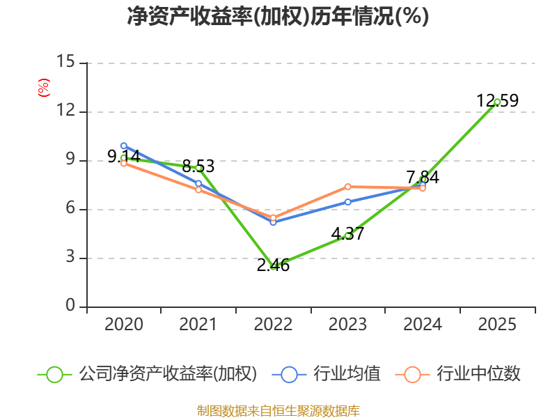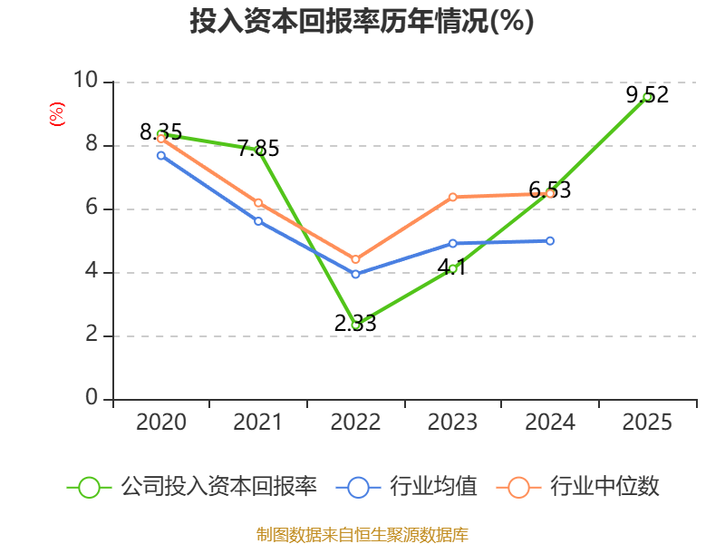 数据显示,2025年公司加权平均净资产收益率为12.59%,较上年同期上升4.75个百分点。公司2025年投入资本回报率为9.52%,较上年同期上升2.99个百分点。