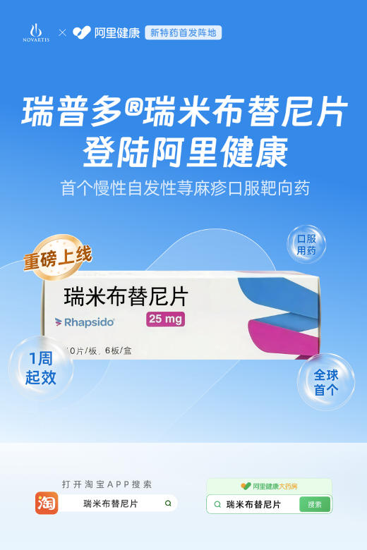 本报讯近日,阿里健康与诺华制药宣布在慢性自发性荨麻疹(CSU)领域达成数字化慢病合作。双方将围绕诺华旗下全球首个口服荨麻疹靶向药瑞米布替尼片(商品名:瑞普多®),依托阿里健康的数字化平台能力,为患者提供从疾病科普、用药指导到全周期健康管理的整合式服务。