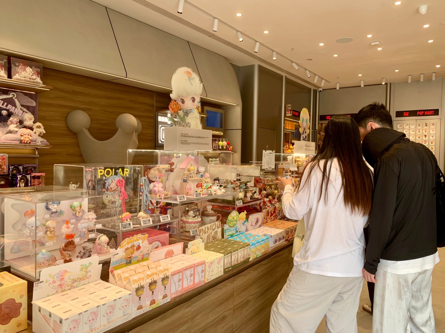 “最近哪个IP卖得比较好?”“你可以看看DIMOO系列……”3月25日下午,深圳福田卓悦中心东区一楼的泡泡玛特专卖店店员告诉记者,最近DIMOO系列的出货量很大。记者了解到,热门爆款星星人系列依旧没货,“前一阵子补了一次货,现在依旧要等货。”当日非周末假期,但该门店里购物消费的人仍然络绎不绝。
