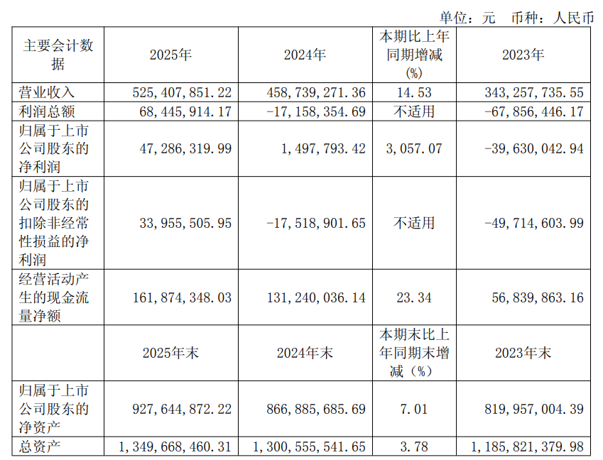 【大河财立方消息】3月25日,赛诺医疗披露2025年年度报告。财报显示,2025年,实现营业总收入5.25亿元,同比增长14.53%;归母净利润4728.63万元,同比增长3057.07%;扣非净利润3395.56万元,同比扭亏。