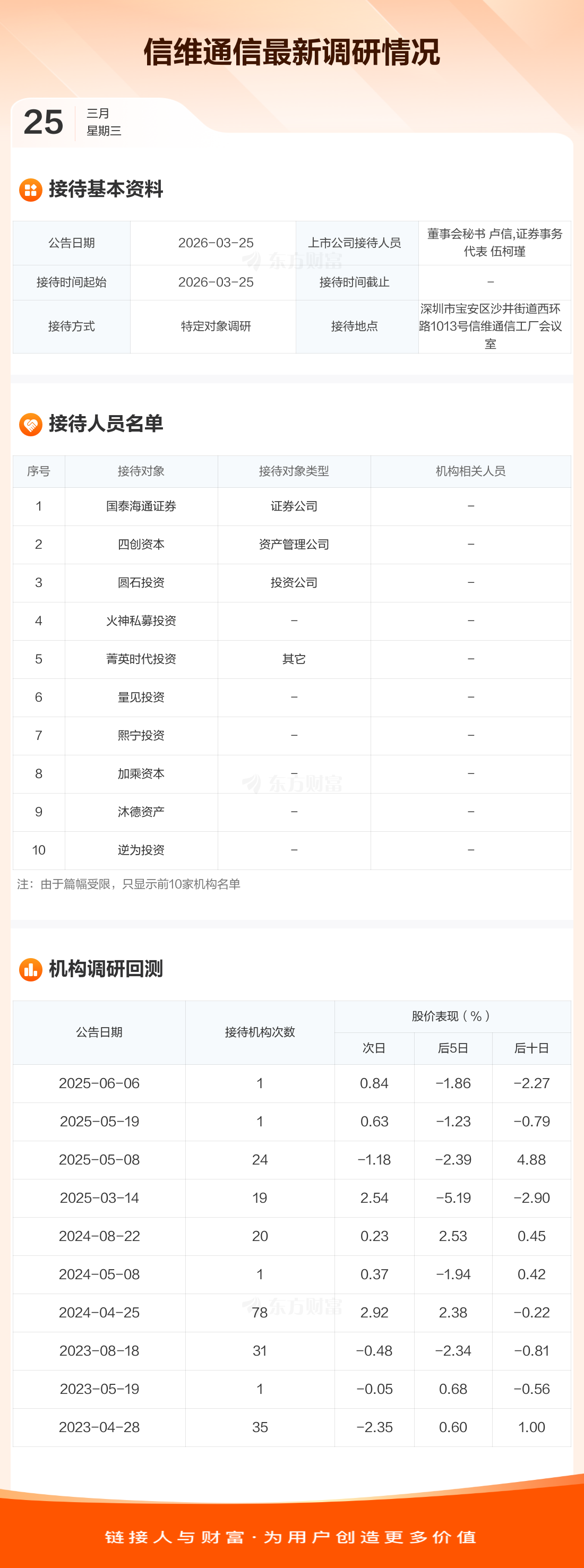 信维通信3月25日公告称,3月25日接待国泰海通证券等11家机构调研。接待人员包括董事会秘书 卢信,证券事务代表 伍柯瑾。