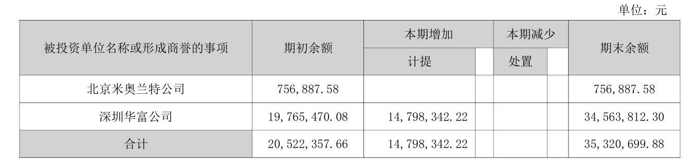 值得一提的是,本报告期,公司的商誉减值损失高达1479.83万元。米奥会展披露,深圳华富公司在形成商誉时存在业绩承诺。本年度深圳华富公司线下展会业务平均净利润及预计未来现金流量不达预期,导致了商誉的减值。