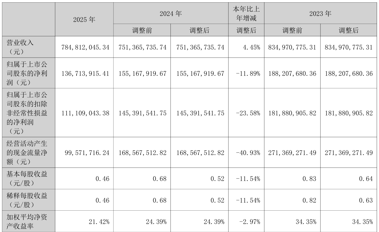 3月25日晚间,米奥会展(300795)发布2025年年度报告,公司全年实现营业总收入7.85亿元,同比增长4.45%;归母净利润为1.37亿元,较2024年同期下降11.89%,延续了上一年度的下滑态势。