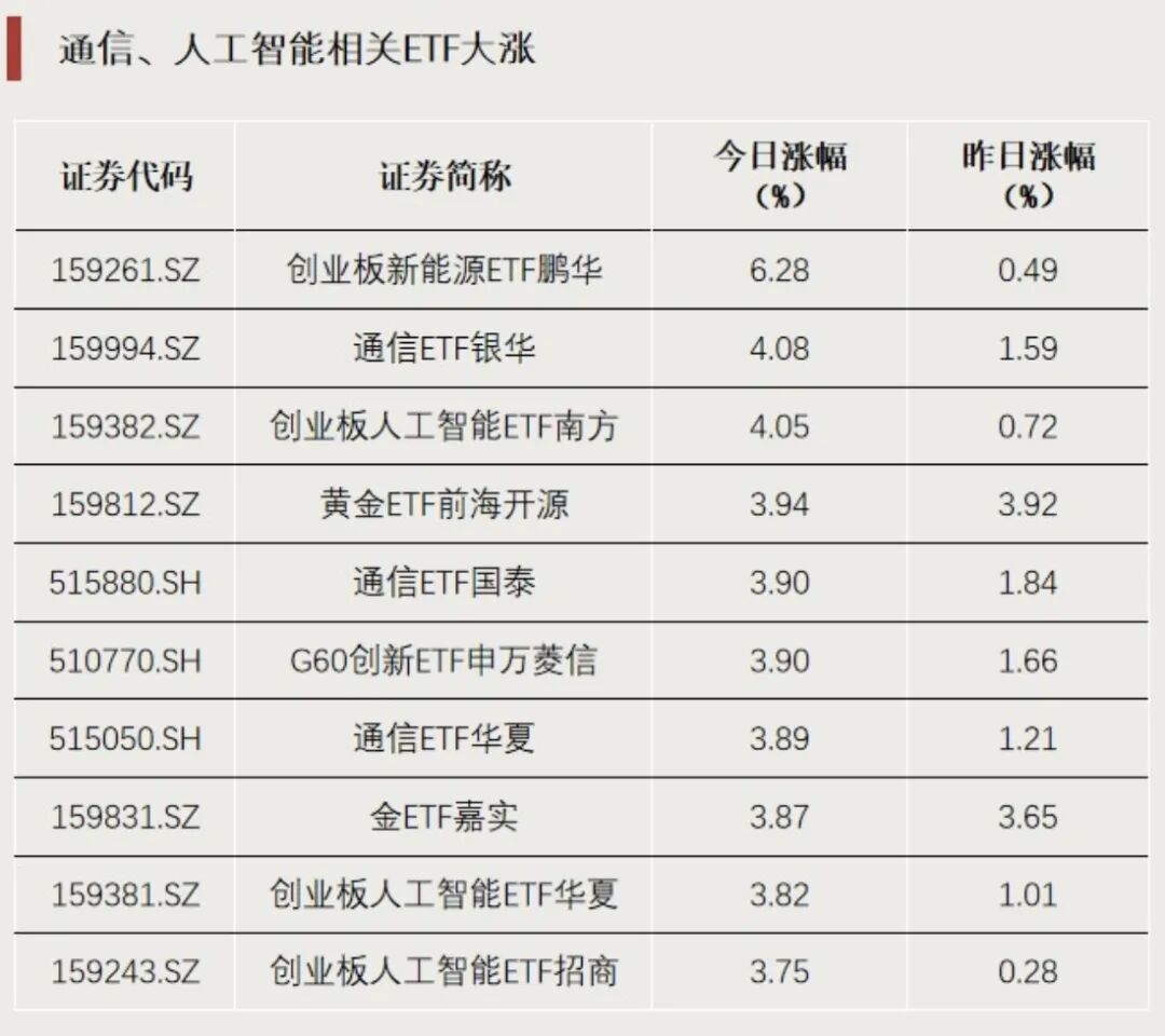 通信和人工智能主题ETF大涨