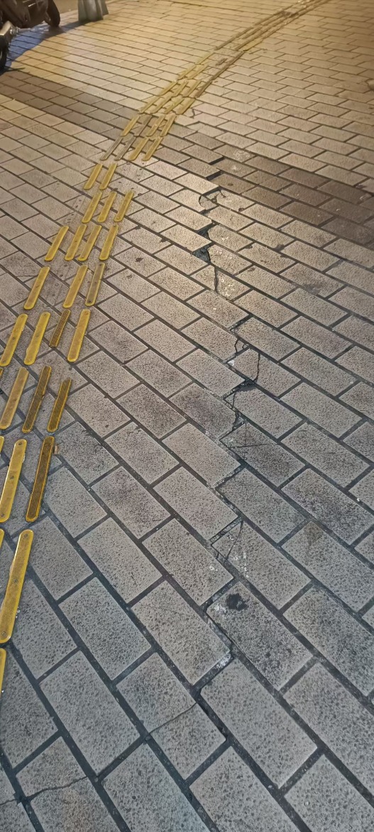 据附近商户介绍,该路段平日人流量较大,既有周边居民日常通行,也有不少游客慕名前来打卡。盲道缺失和路面开裂问题不仅影响出行体验,更直接威胁通行安全。“经常看到有人被绊到,尤其是下雨天,地砖滑,更容易出事。”商户陈女士说,希望相关部门能尽快修复,还大家一个安全的出行环境。