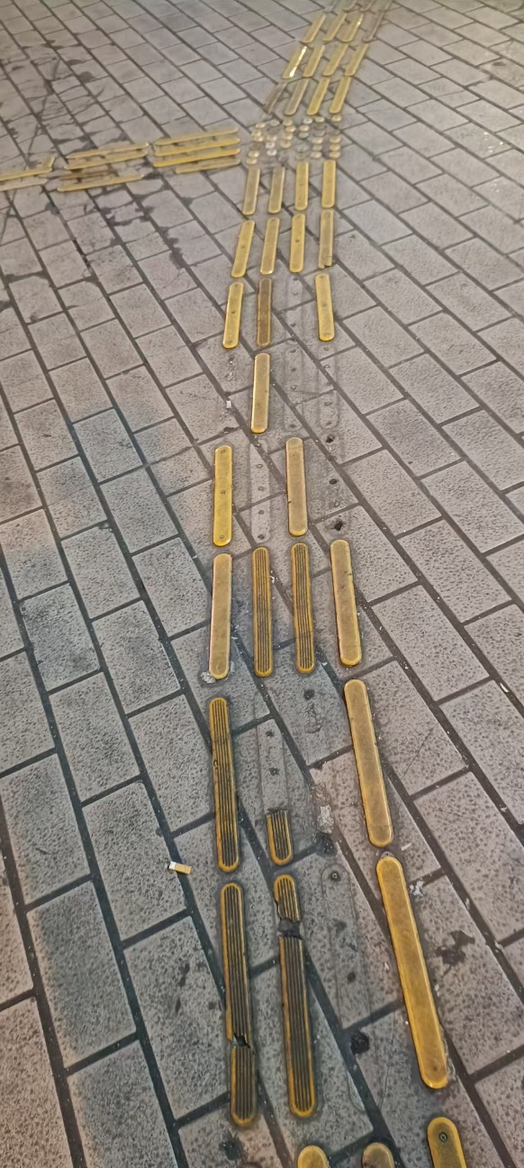 黄老伯告诉新民晚报记者,前天晚上8时左右,他沿雁荡路东侧盲道向淮海中路方向行走,途经兴安路后,脚下的盲道条突然“消失”。“全凭脚感摸索,磕磕绊绊才挪到路口。”作为一名常年依赖盲道出行的视障人士,黄老伯对盲道的“断档”既无奈又担忧,“这可是我的‘眼睛’啊,没了它,出门都提心吊胆。”