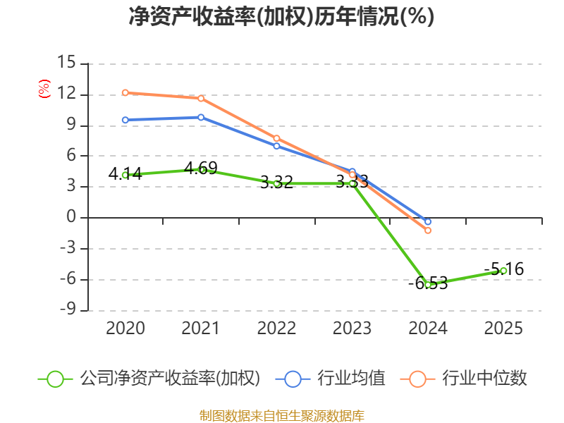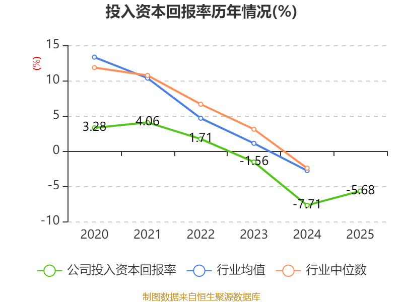 数据显示,2025年公司加权平均净资产收益率为-5.16%,较上年同期上升1.37个百分点。公司2025年投入资本回报率为-5.68%,较上年同期上升2.03个百分点。