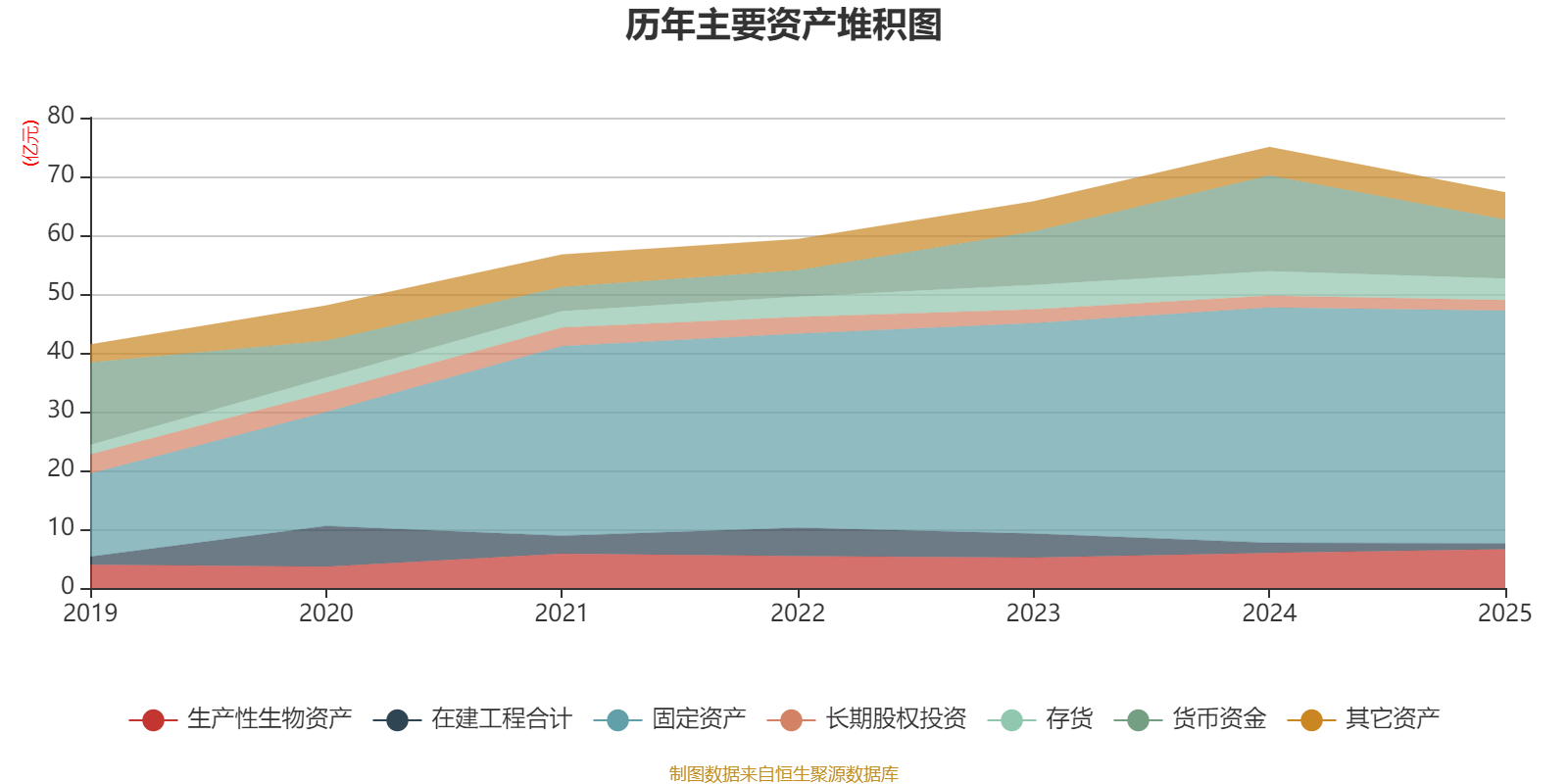 资产重大变化方面,截至2025年末,公司货币资金较上年末减少38.48%,占公司总资产比重下降6.82个百分点;固定资产较上年末减少1.08%,占公司总资产比重上升5.47个百分点;生产性生物资产较上年末增加10.79%,占公司总资产比重上升1.87个百分点;在建工程合计较上年末减少42.69%,占公司总资产比重下降0.83个百分点。