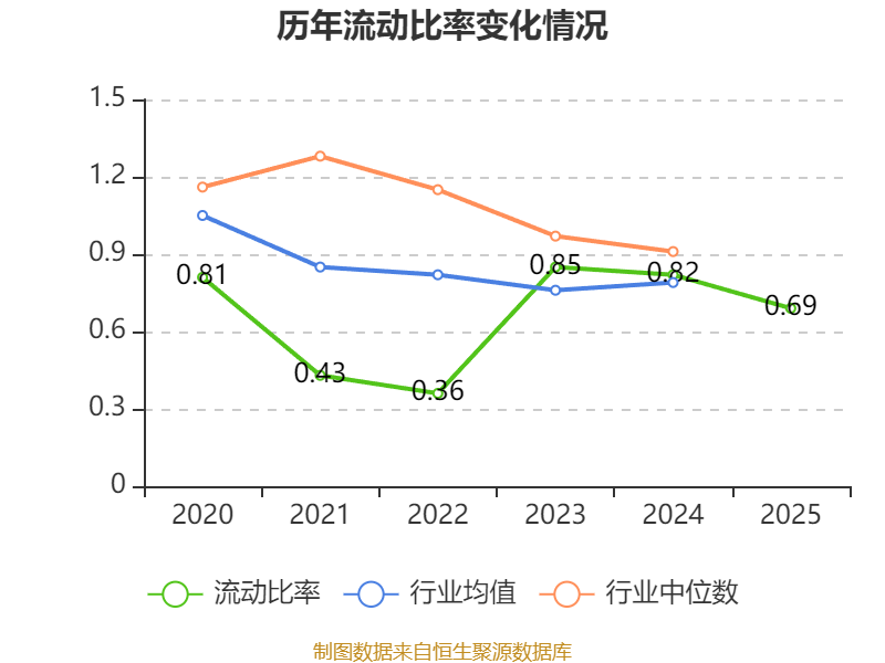 2025年,公司流动比率为0.69,速动比率为0.52。