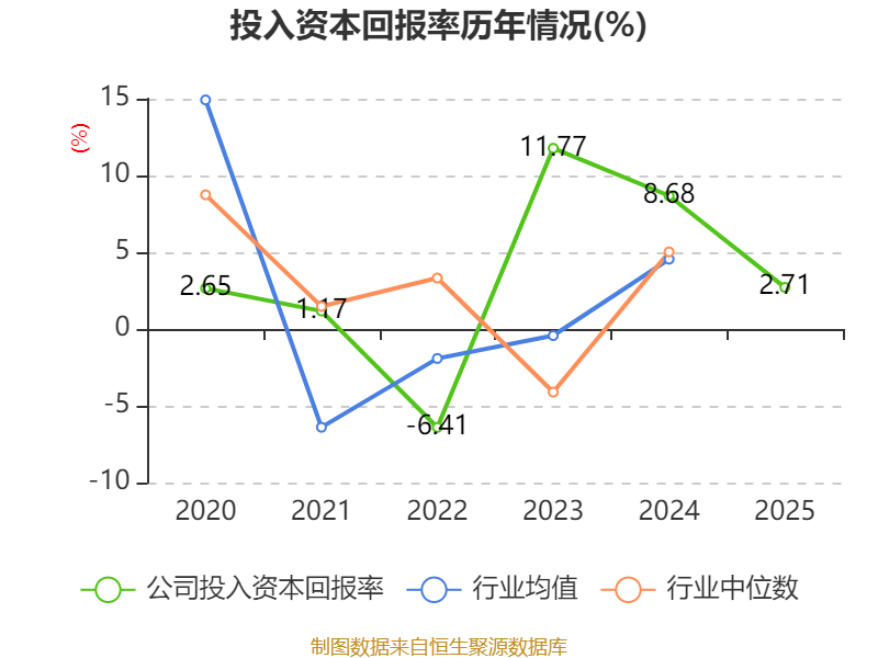 数据显示,2025年公司加权平均净资产收益率为3.75%,较上年同期下降7.51个百分点。公司2025年投入资本回报率为2.71%,较上年同期下降5.97个百分点。