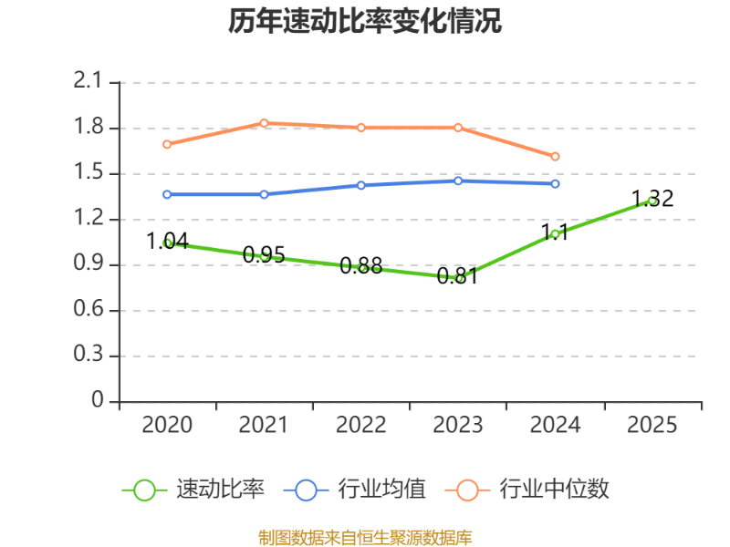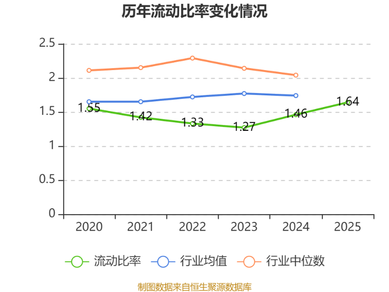 2025年,公司流动比率为1.64,速动比率为1.32。