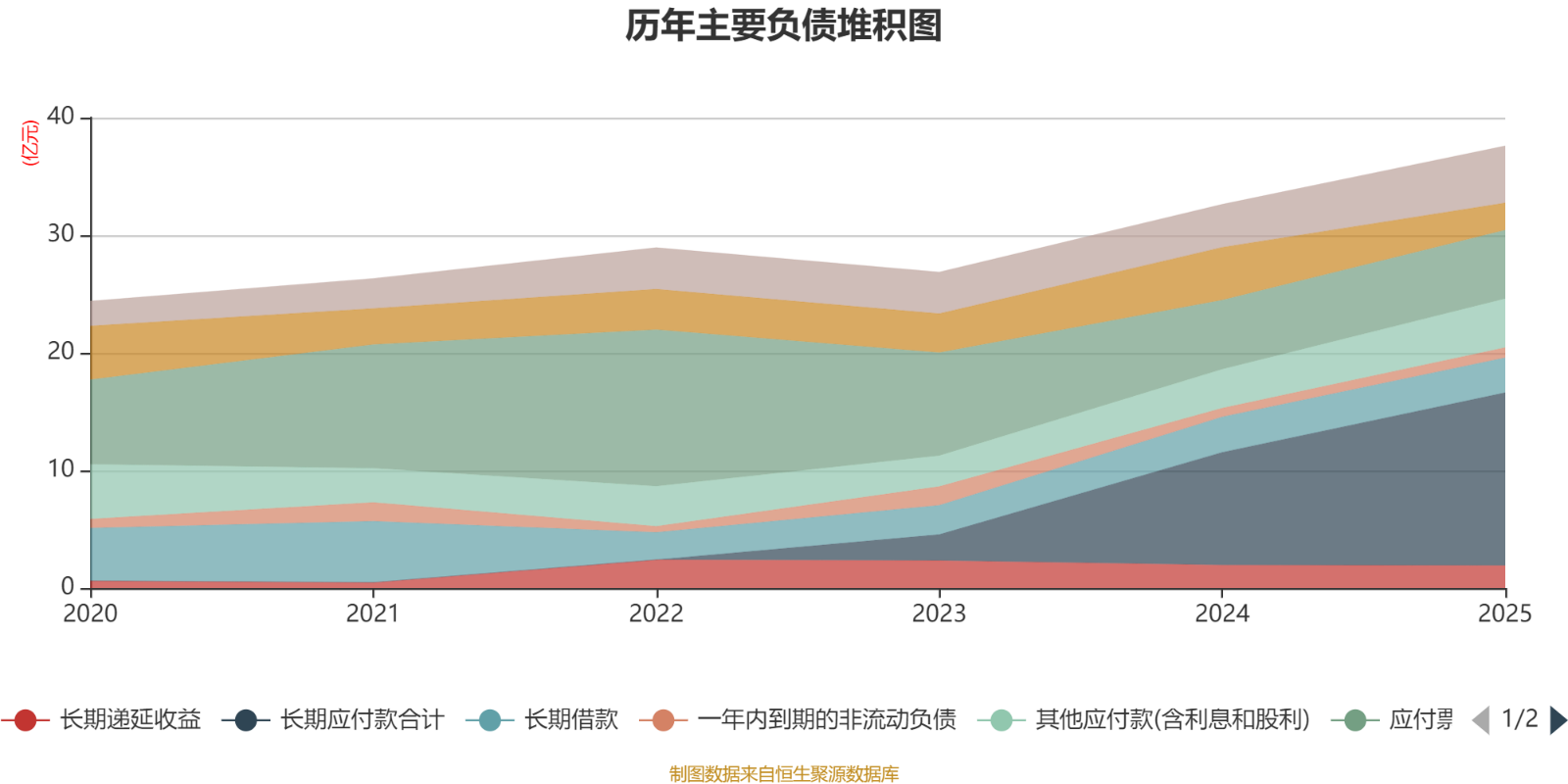 负债重大变化方面,截至2025年末,公司长期应付款合计较上年末增加53.44%,占公司总资产比重上升4.84个百分点;短期借款较上年末减少48.48%,占公司总资产比重下降2.69个百分点;租赁负债较上年末增加314.39%,占公司总资产比重上升1.13个百分点;其他应付款(含利息和股利)较上年末增加25.44%,占公司总资产比重上升0.67个百分点。