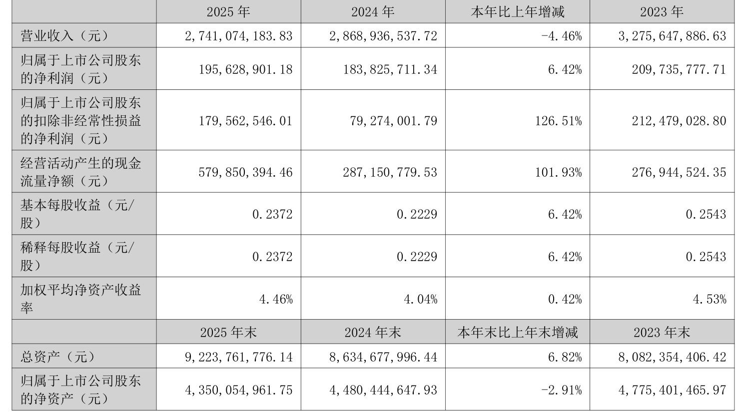 数据显示,2025年公司加权平均净资产收益率为4.46%,较上年同期上升0.42个百分点。公司2025年投入资本回报率为4.03%,较上年同期上升0.8个百分点。