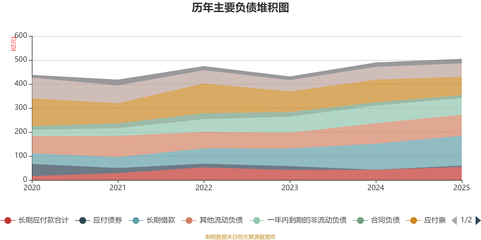 负债重大变化方面,截至2025年末,公司应付票据及应付账款较上年末减少17.98%,占公司总资产比重下降2.16个百分点;长期借款较上年末增加13.55%,占公司总资产比重上升1.96个百分点;长期应付款合计较上年末增加28.45%,占公司总资产比重上升1.59个百分点;应付债券占公司总资产的0.79%,上年末为0。
