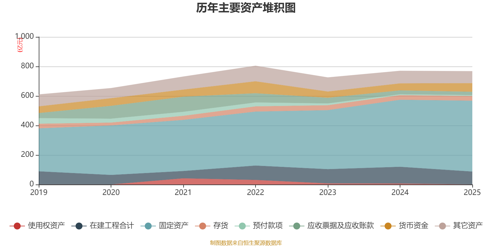 资产重大变化方面,截至2025年末,公司固定资产较上年末增加5.62%,占公司总资产比重上升3.51个百分点;在建工程合计较上年末减少22.62%,占公司总资产比重下降3.29个百分点;货币资金较上年末增加22.41%,占公司总资产比重上升1.41个百分点;使用权资产较上年末减少99.96%,占公司总资产比重下降0.84个百分点。