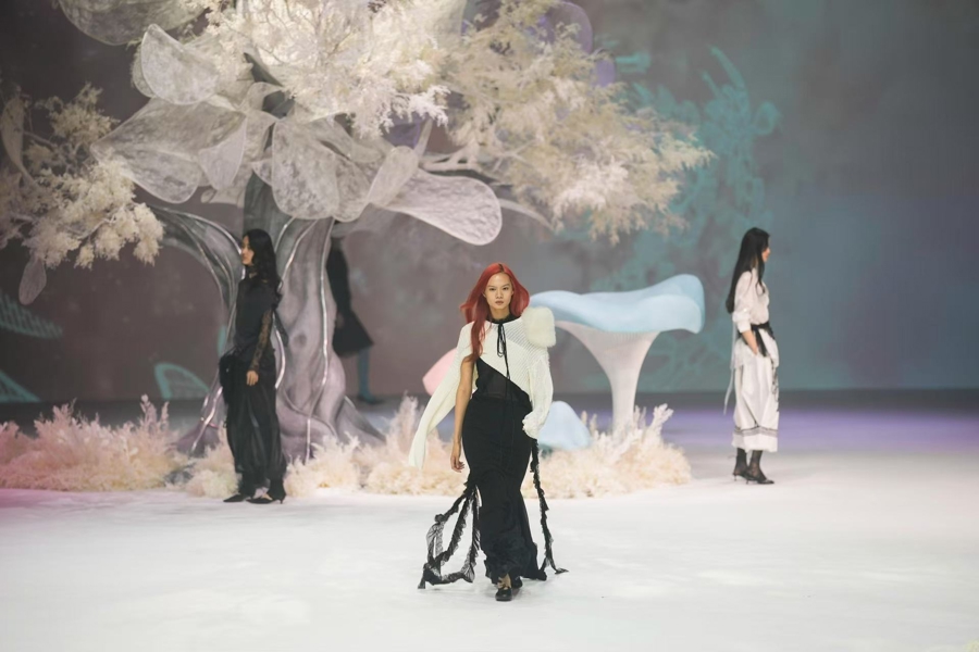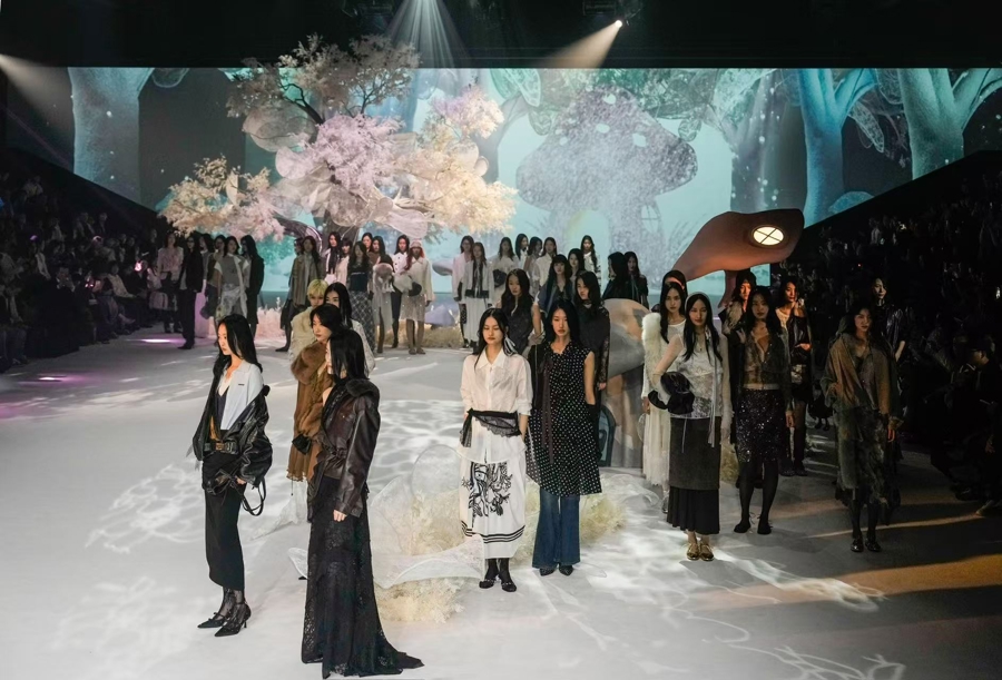 从多元审美的个性表达,到传统文化在当代语境下的焕新演绎,本季秀场的灵感格外丰沛。本土品牌或化用阴阳共生的中国哲学,或演绎楚辞浪漫的青铜遗韵,或将五音疗愈融入时装语言,向世界讲好中国故事、传播中国声音。还有北欧童话的自由轻盈、意大利哥特建筑的神秘气息、左岸精神的温热浪漫,皆跨越时空,通过作品传递给在场的观秀者。观众还能看到工艺方面的奇思妙想,从非遗织锦到3D打印、激光切割,设计师们以“可穿戴的艺术”为理念,在手工温度与技术创新间探索着精妙的平衡。