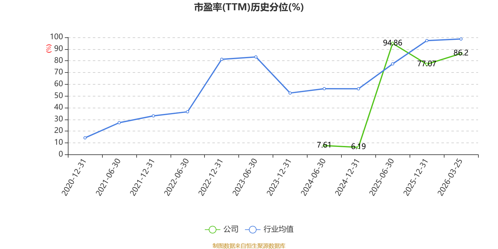 市盈率、市净率为负时,不显示当期分位数,会导致折线图中断。