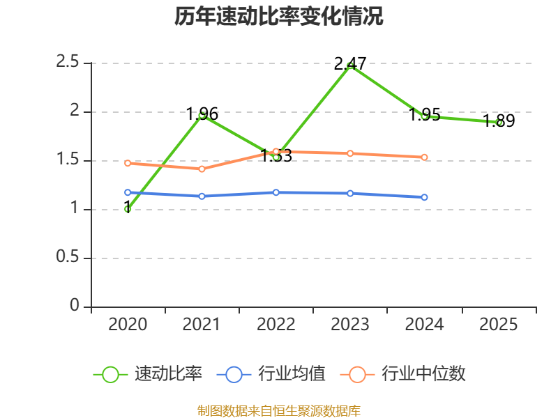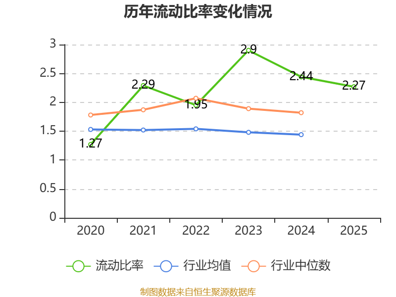 2025年,公司流动比率为2.27,速动比率为1.89。