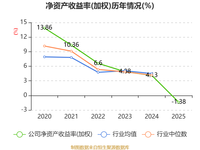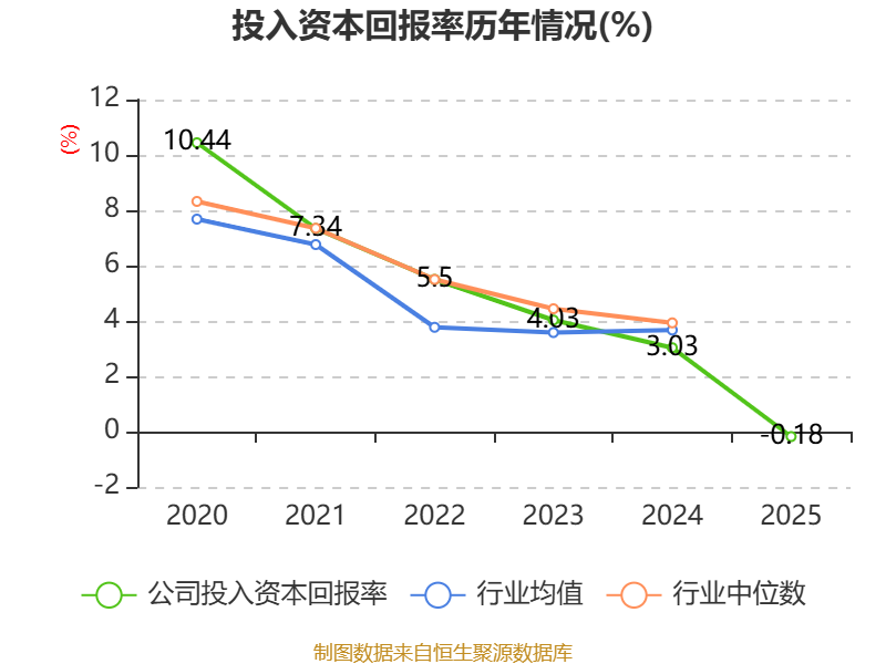 数据显示,2025年公司加权平均净资产收益率为-1.38%,较上年同期下降5.51个百分点。公司2025年投入资本回报率为-0.18%,较上年同期下降3.21个百分点。