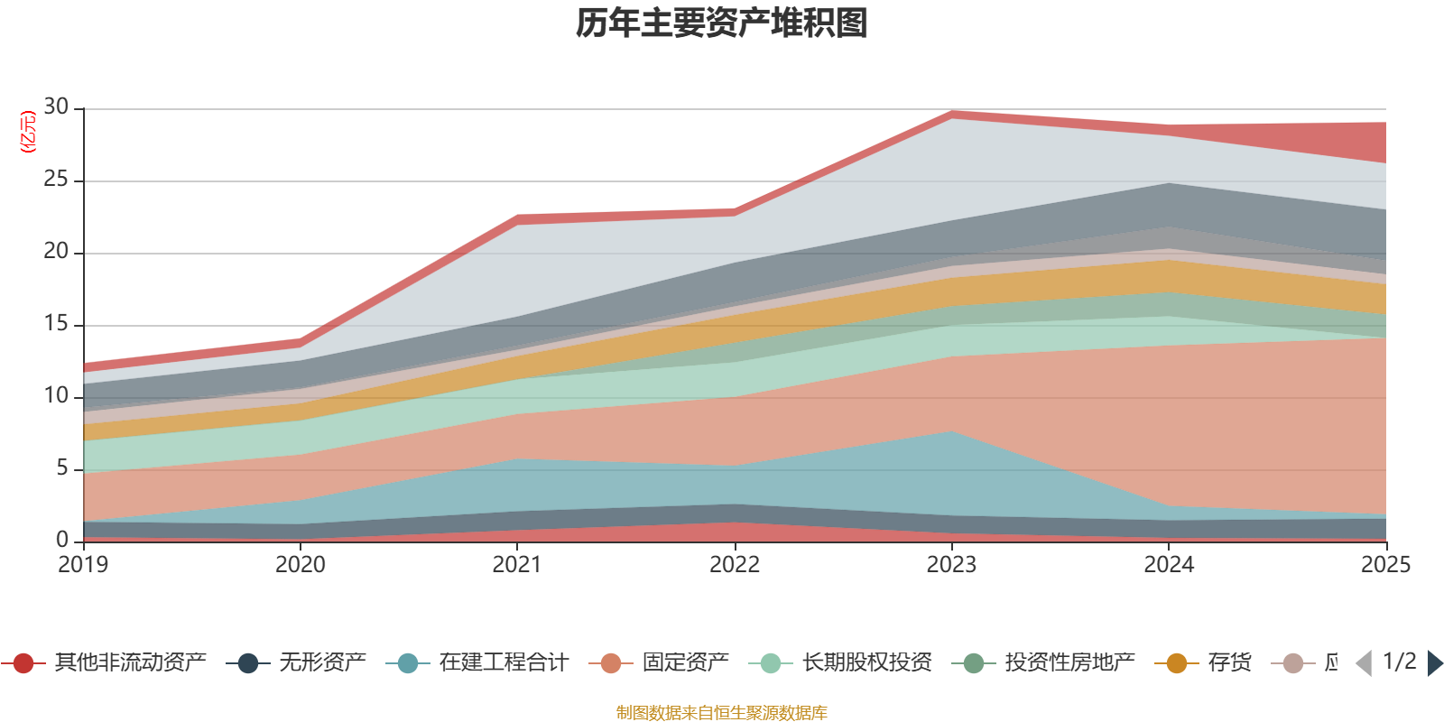 负债重大变化方面,截至2025年末,公司其他应付款(含利息和股利)较上年末增加1730.34%,占公司总资产比重上升2.6个百分点;长期借款较上年末增加265.71%,占公司总资产比重上升1.74个百分点;短期借款较上年末增加27.74%,占公司总资产比重上升1.29个百分点;应付票据及应付账款较上年末减少13.51%,占公司总资产比重下降1.25个百分点。
