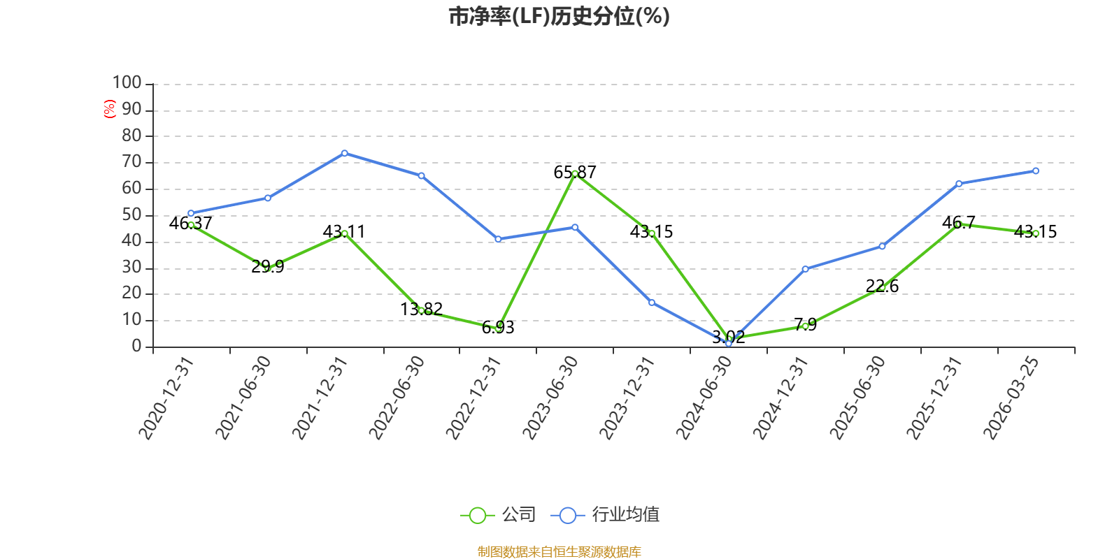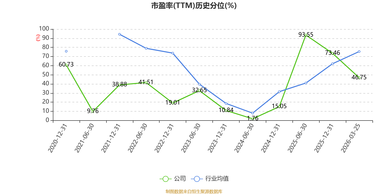 市盈率、市净率为负时,不显示当期分位数,会导致折线图中断。