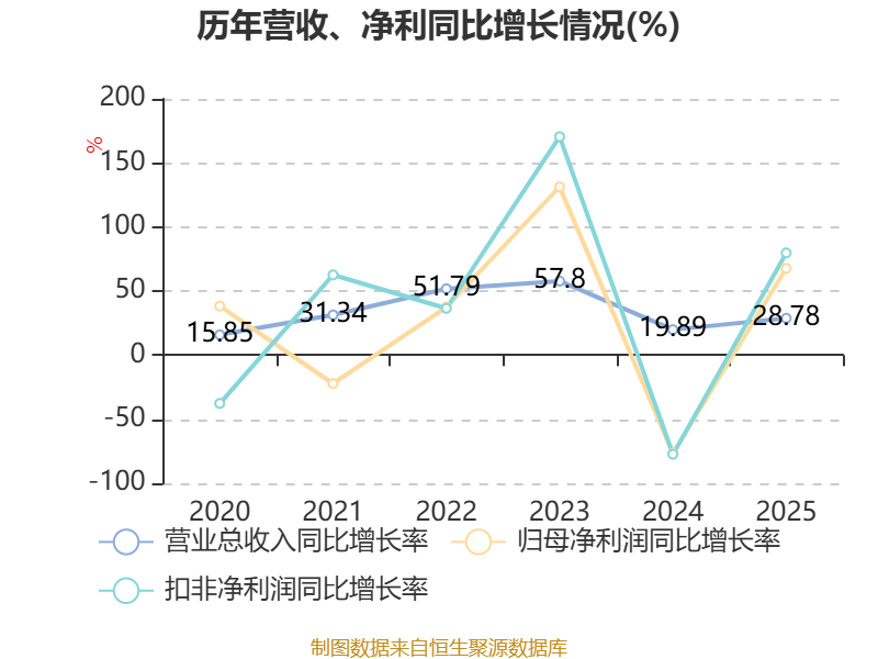 资产重大变化方面,截至2025年末,公司固定资产较上年末减少0.26%,占公司总资产比重下降2.83个百分点;在建工程合计较上年末增加792.9%,占公司总资产比重上升2.29个百分点;应收票据及应收账款较上年末增加24.59%,占公司总资产比重上升1.94个百分点;商誉较上年末没有变化,占公司总资产比重下降1.14个百分点。